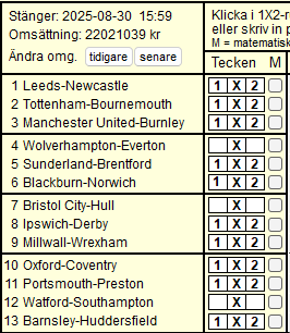 Stryktipset lördag 30 augusti och sikten är insällt på BRA utdelning!